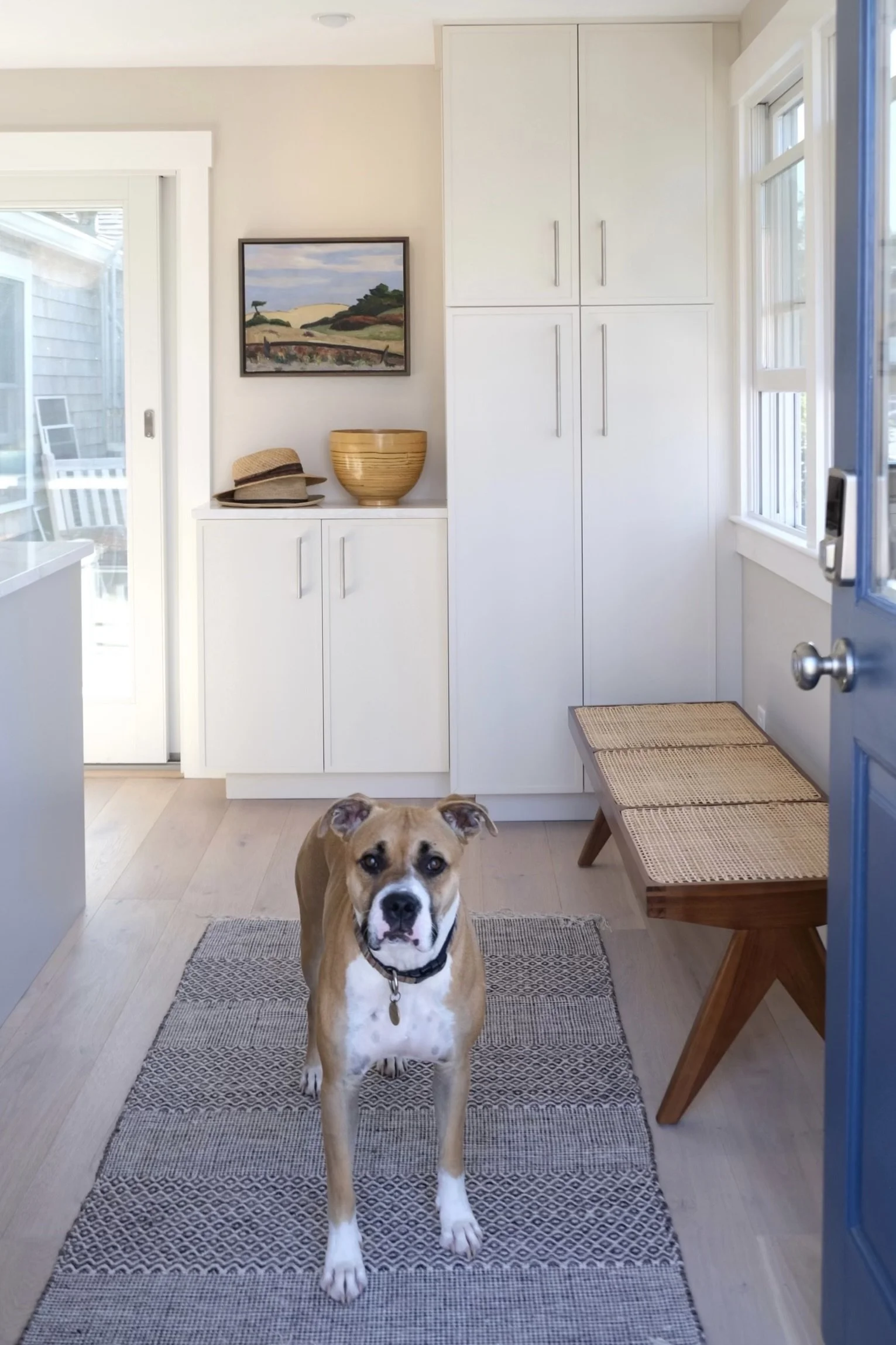 The removal of an unused chimney allowed for a strategic reorganization of the interior layout, enabling the creation of a more functional kitchen and adjacent dining area. The redesign maximizes efficiency and enhances natural light, making the compact unit feel more open, airy, and suited to contemporary vacation living.